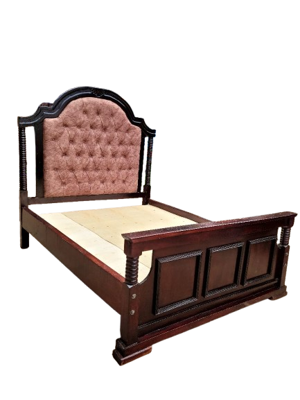 6×6 Luxury Vintage Hardwood King Bed with Upholstered Headboard